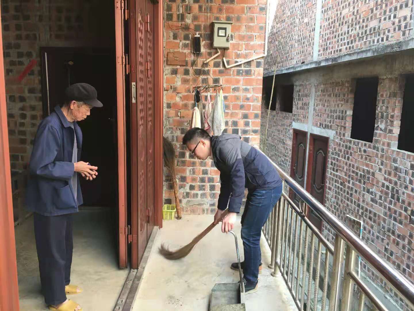 帮助贫困户打扫庭院、清理房屋、擦拭门窗桌椅,整理摆放贫困户家中生活物品,为贫困户创造干净、整洁、卫生的生活环境。