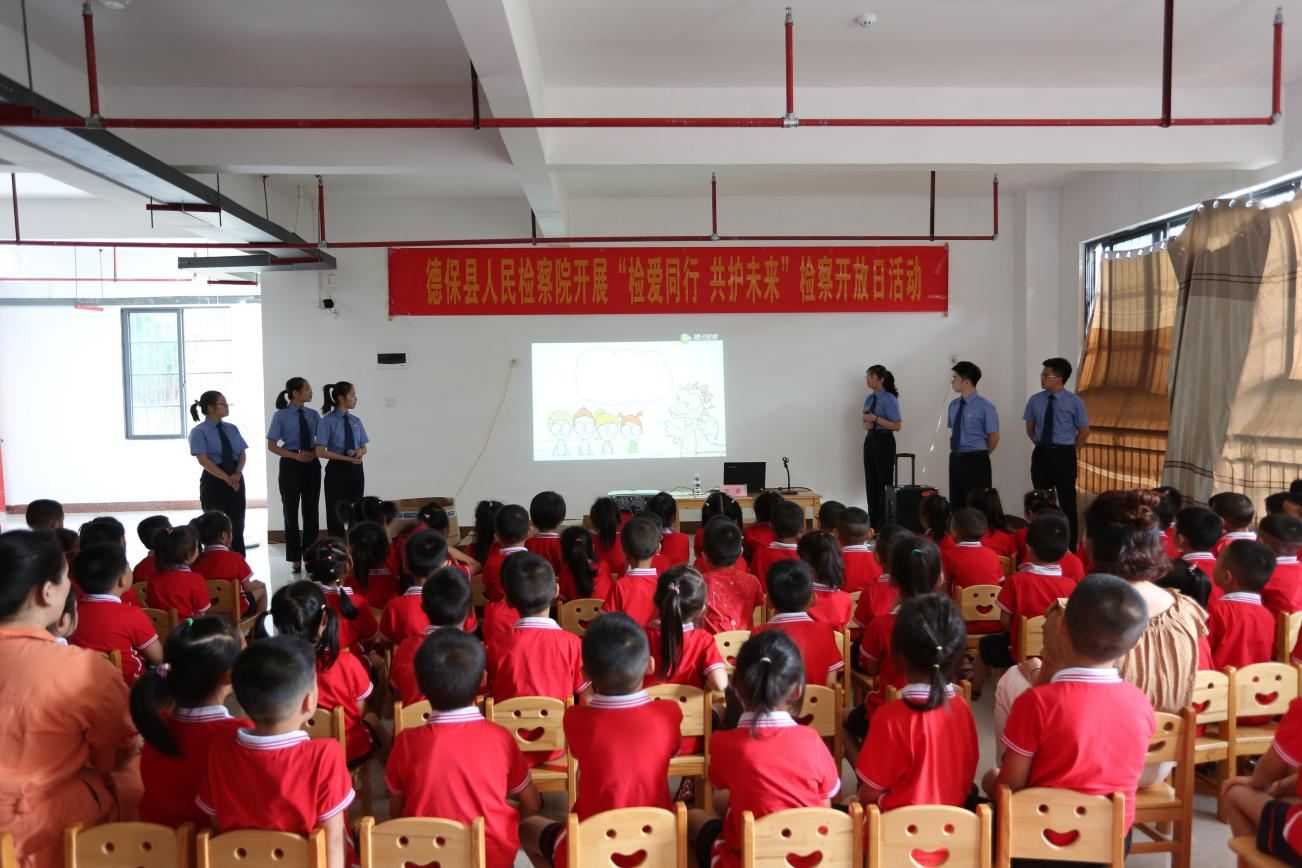 5月26日,德保县人民检察院以“检爱同行,共护未来”为主题的检察开放日为契机,深入德保县德福社区老乡家园幼儿园开展法治进校园活动。通过小朋友们耳熟能详的改编法治安全歌调动在场小朋友们的积极性,并通过动漫小图片向祖国的花朵们教授自我保护及预防性侵小知识。