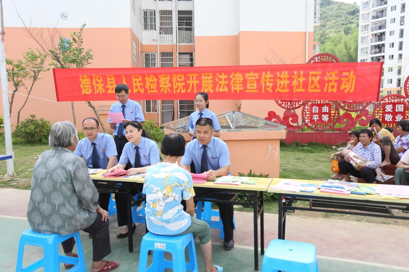 6月3日上午,德保县人民检察院在易地搬迁安置点城关镇德福社区开展集普法宣传、法律咨询为一体的“送法进社区”活动。检察干警以通俗易懂的案例为切入口,深入浅出地向现场群众介绍了检察机关主要职能,宣传政法队伍教育整顿意义与成效,并就群众关心的问题,现场为群众答疑解惑,普及相关法律知识,共发放法治宣传材料200余份,接受法律咨询5人次。