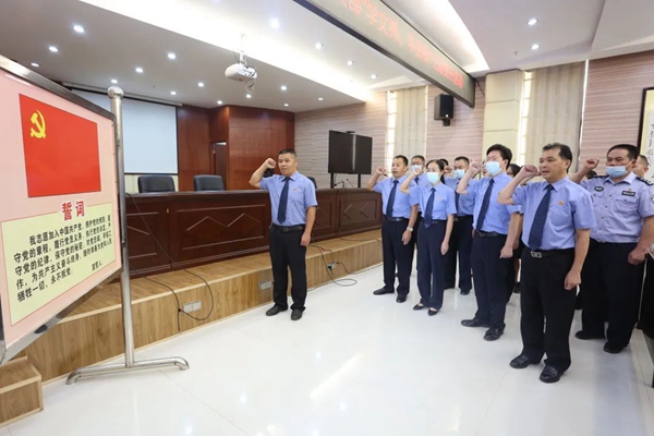课前,黄天琪检察长首先带领全体党员干部重温入党誓词:“我志愿加入中国共产党,拥护党的纲领,遵守党的章程……”。重温誓词铿锵有力,全体党员面对鲜红党旗再次接受思想淬炼和精神洗礼,进一步增强不忘初心、牢记使命的责任感。