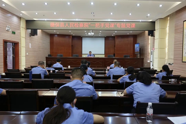 为纪念中国共产党建党101周年,喜迎党的二十大胜利召开,推动基层党建“五基三化”攻坚年行动各项重点任务落地见效。6月30日上午,德保县人民检察院党组书记、检察长黄天琪以扎实开展“五基三化”攻坚年为主题,为全体党员干部上一堂专题党课。